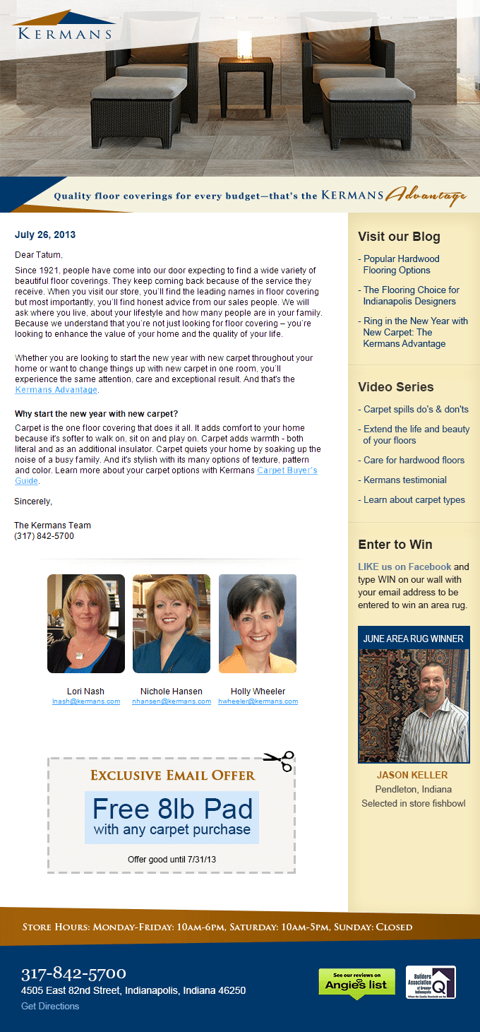 Email marketing example from Kermans Flooring |