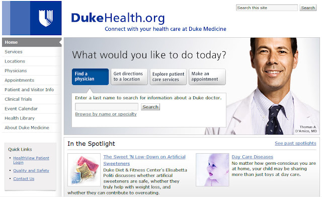 Duke Medical website is a great example of simple and effective design. Nothing is over-the-top fancy,