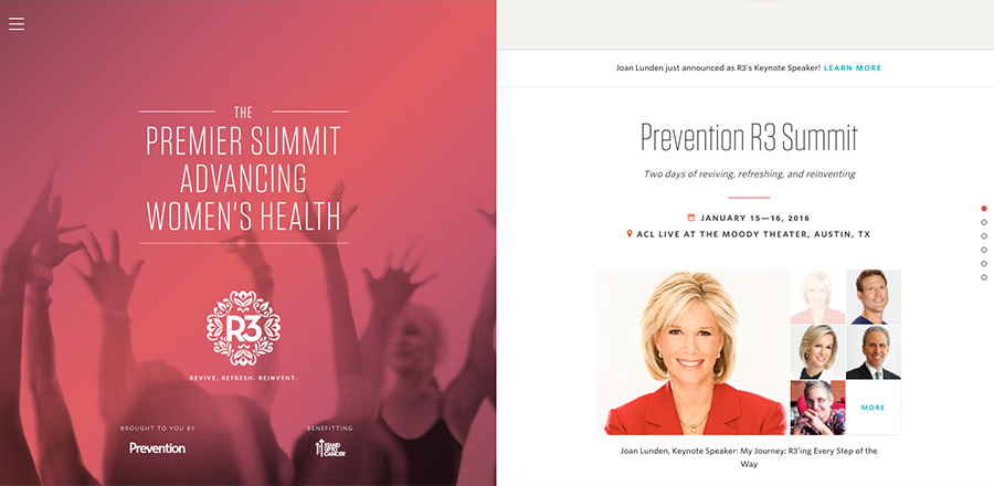 Why it’s effective: The video background makes the page captivating and gives a preview of the event. The design is clean and presents information in a straightforward manner. The sticky navigation along the bottom of the page makes it easy to jump to the information you need.